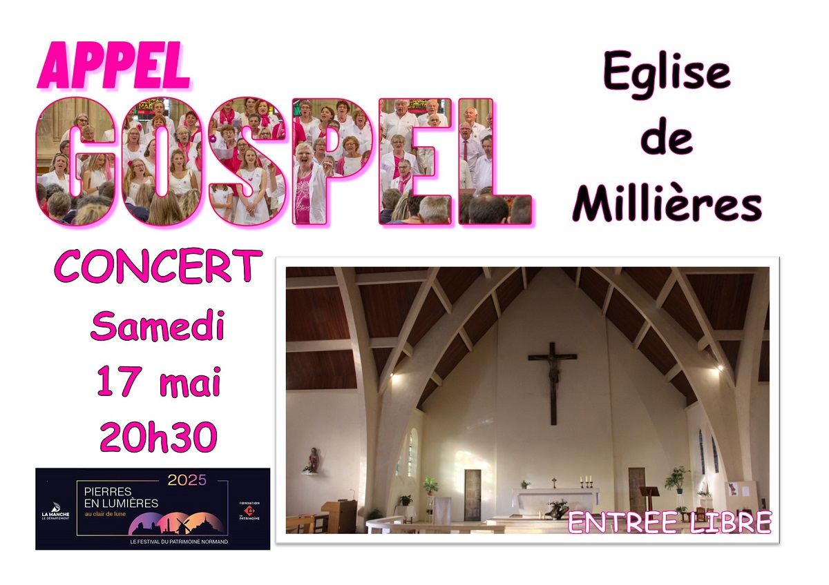 Concert gospel dans l'église St-Etienne à Millières. Eglise mise en lumière par des spots extérieur et lampions intérieur - extérieur.