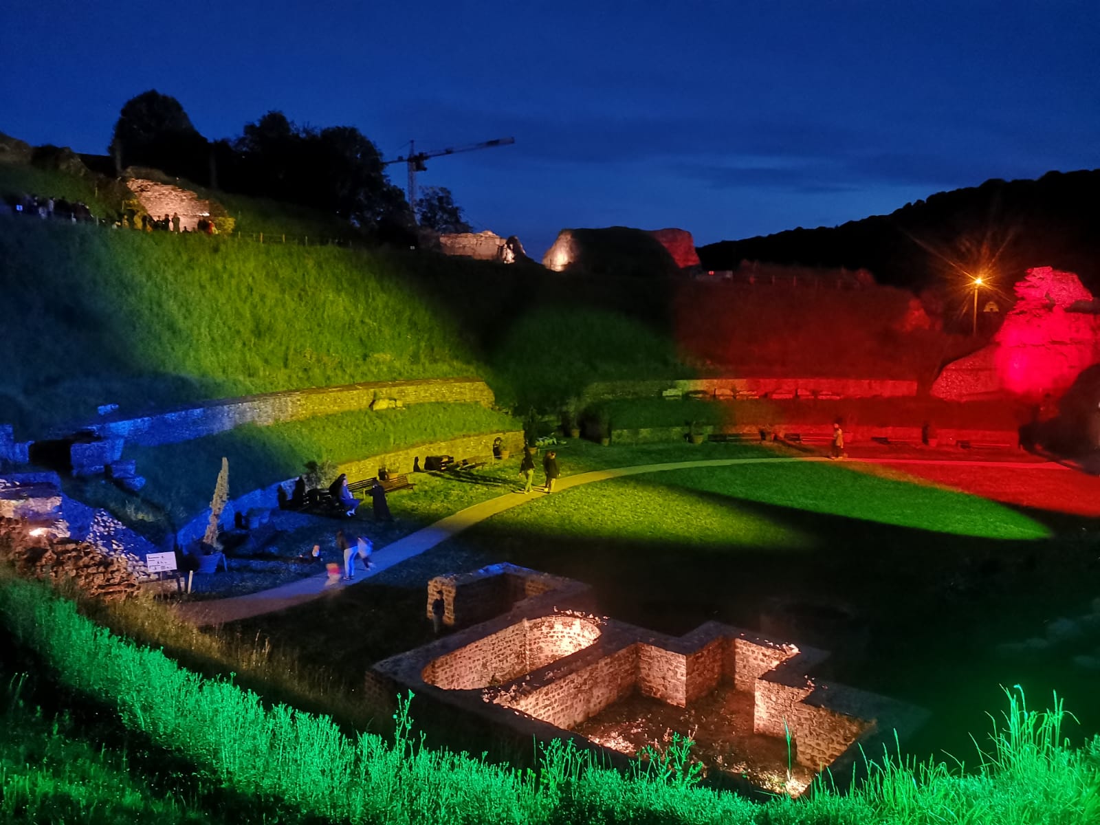 À l’occasion des dix ans de Pierres en lumières, le théâtre romain de Lillebonne se pare de ses plus belles couleurs pour les trois jours du Festival du patrimoine normand du 16 au 18 mai 2025.