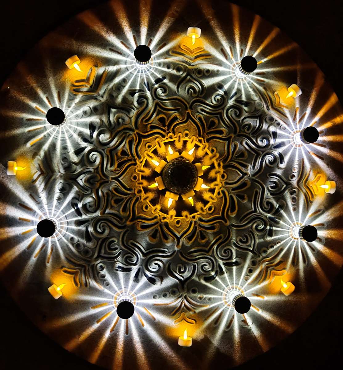 Au petit moulin les visiteurs découvriront un chemin de mandalas lumineux réalisé par l'artiste SYM ART'SEB, les mini-roues de bougies flottantes sur l'eau du lavoir, et la grande roue colorée pour l'occasion.