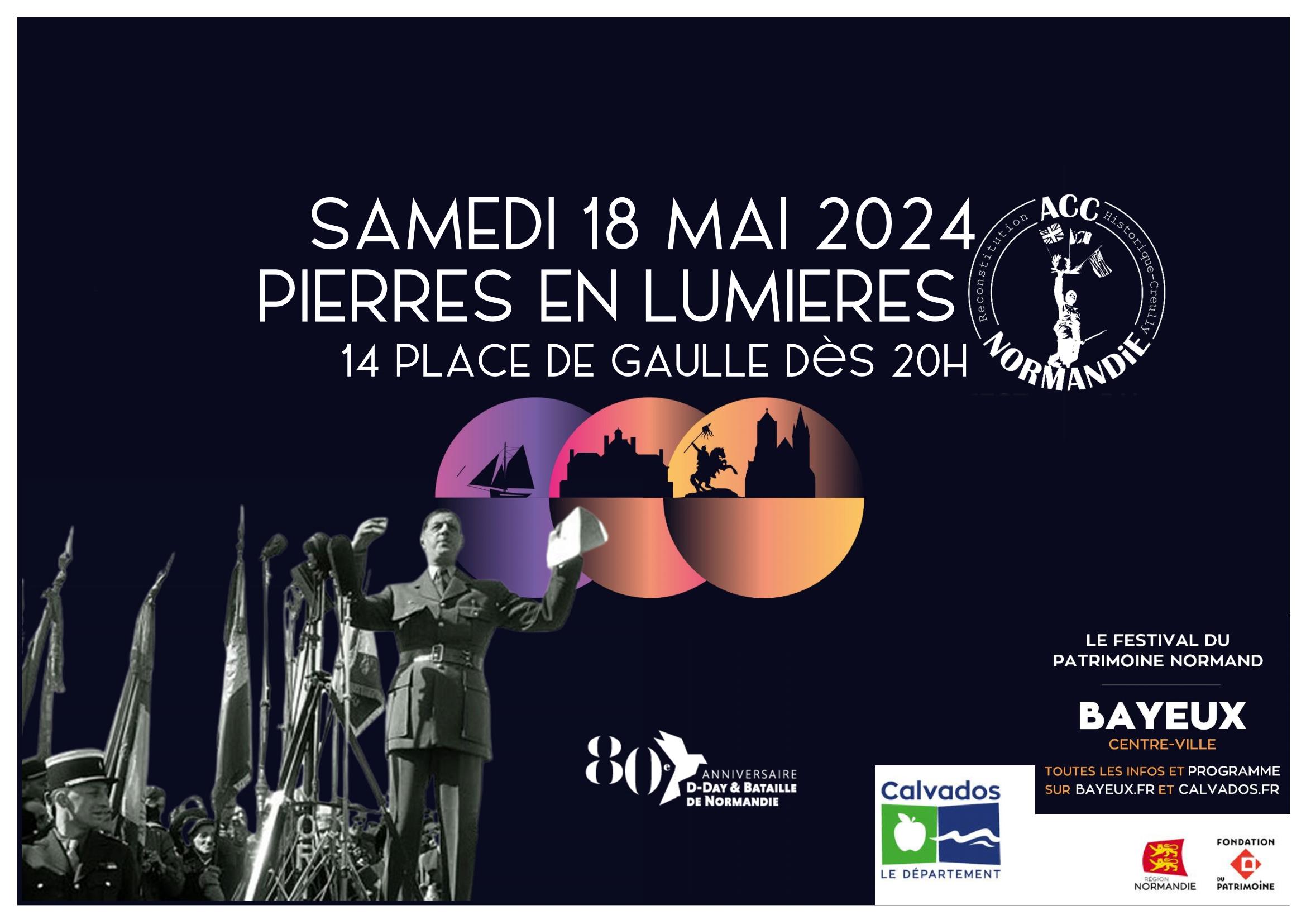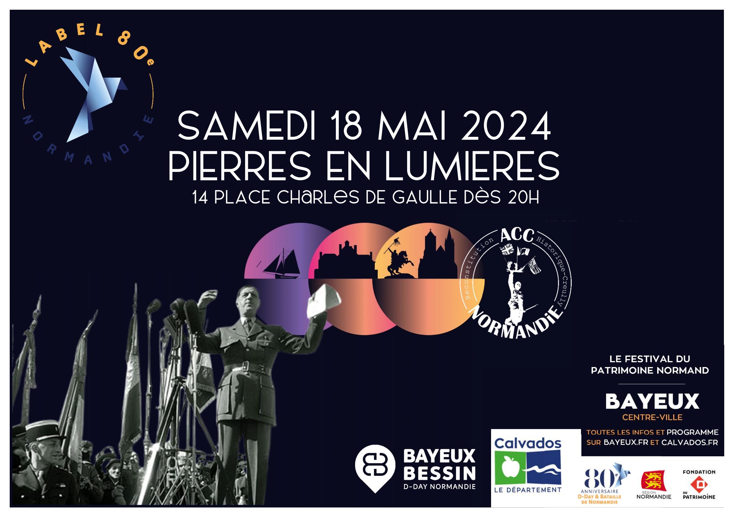 Dans le cadre de « Pierres en lumières » le temps d’une soirée L’association ACC Normandie et Mr Leroy Xavier mettent en scène l’arrivée du général De Gaulle à Bayeux le 14 juin 1944, dans une demeure du 19ème transformée en mode 1944, avec des reconstitueurs en tenue d’époque.