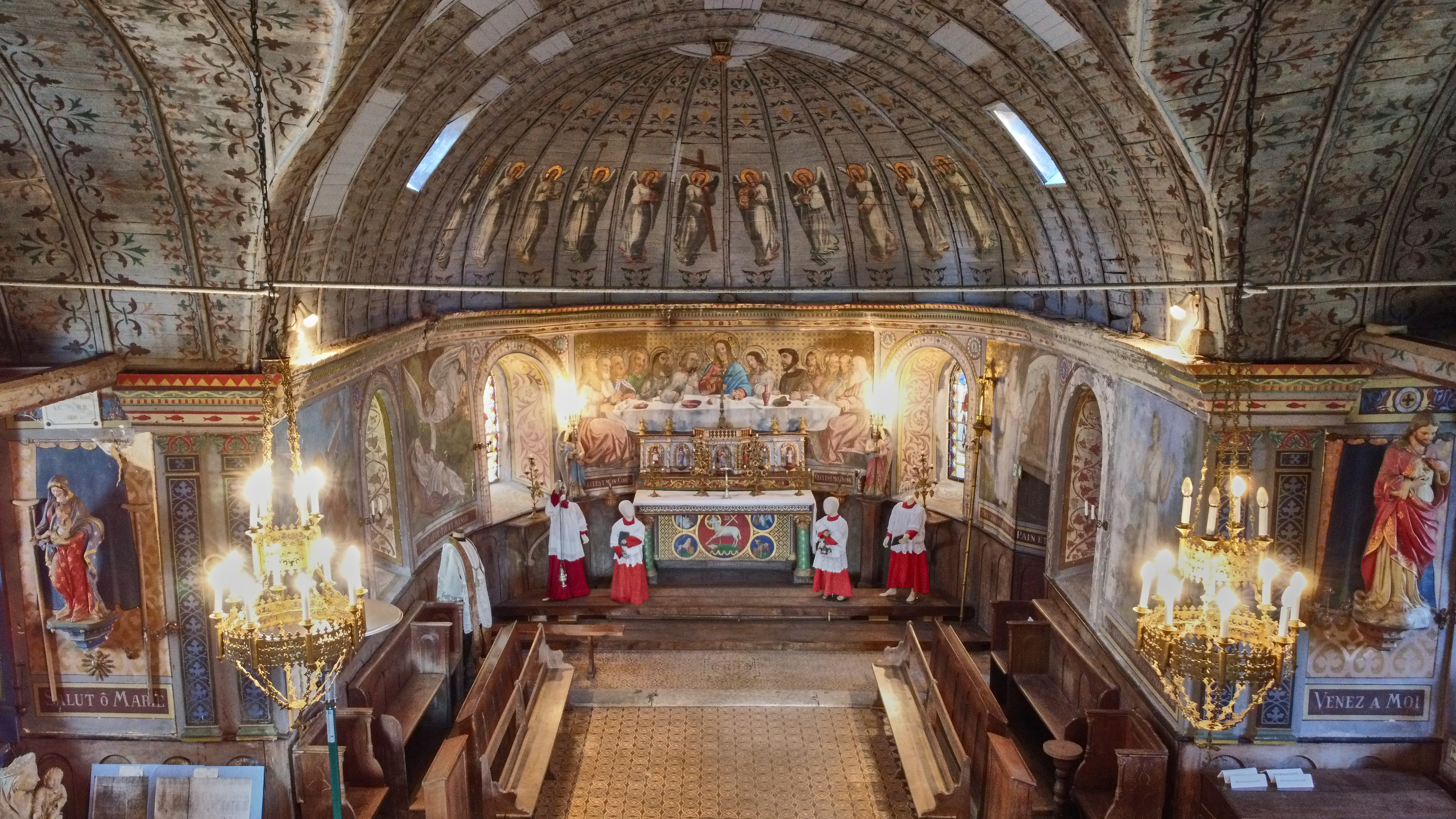 L'église de Saint-Germain-de-Martigny disposede peintures murales réalisées par ce peintre. Découvrez une église entièrement peinte, illuminée pour cette occasion.